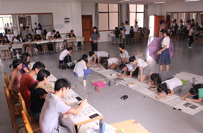 7月2日,书法现场临帖大赛在叶绿野艺术楼A211举行。来自13级美术教育专业的廖红珎以气势庄严的“颜体”书法作品荣获一等奖。