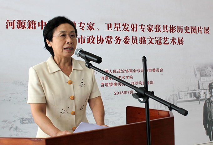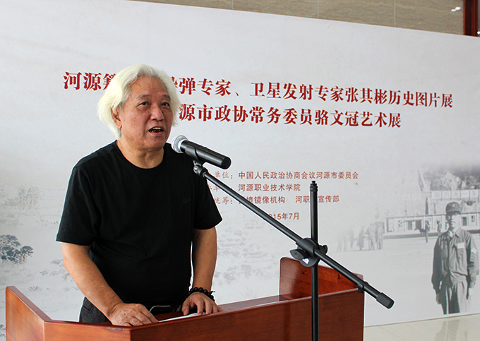 7月15日,由河源市政协主办、河职院承办的《河源籍中国导弹专家、卫星发射专家张其彬历史图片展暨河源市政协常务委员骆文冠艺术展》在我校学术交流中心举行了隆重的揭展仪式,展出记录河源籍中国导弹专家、卫星发射专家张其彬传奇人生的精彩图片及河源籍国家一级美术师骆文冠的部分代表作品。市政协主席龚佐林带队出席仪式。