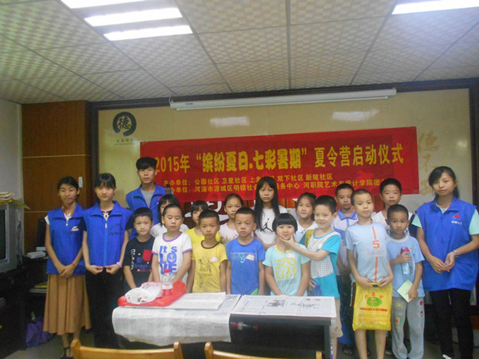 本次夏令营活动在源城区五个社区举行,活动主要以关心社区留守儿童及服务社区为目的。艺术学院团总支共派出18名志愿者参与此次夏令营活动,服务117名社区儿童,其中上角社区20人,双下社区32人,公园社区20人,卫星社区20人,高埔岗社区25人。
