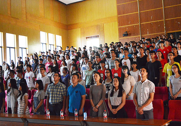 9月3日上午,学术报告厅内人头攒动,热情高涨,校团委全体老师、各大学生组织干部、学生代表齐聚在此共同观看了纪念中国人民抗日战争暨世界反法西斯战争胜利70周年阅兵仪式现场直播。