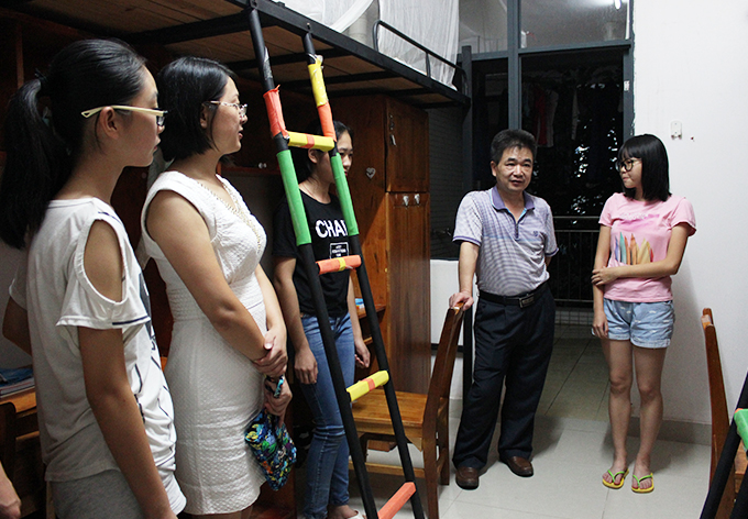 9月15日晚,唐汉芳副校长在人文学院相关负责人和辅导员的陪同下走访人文学院新生宿舍,看望2015级的新生。
