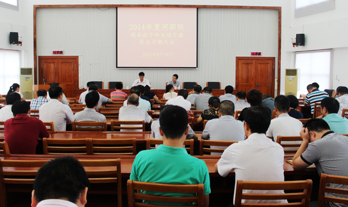 9月18日上午,我校召开2014年领导班子和处级领导干部年度考核会议,市委组织部考核组领导、学校领导及副科级以上干部参加了会议,会议由校党委书记段邦贤主持。