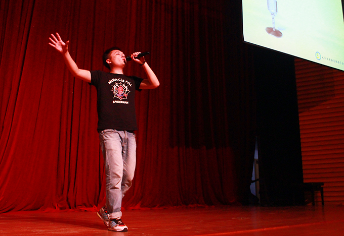 随后,多姿多彩的文艺节目轮番上演。校园十大歌手之一廖鹤翔以深情浑厚的嗓音演唱《漫步》,直接调动起现场气氛;轮滑协会凭借娴熟的技巧、高超的旋转的功底展现得淋漓精致,观众掌声不断;由海燕话剧社精心准备的幽默小品更是未演先热,女儿尽孝过程中所发生的幽默情节逗乐了现场的观众。