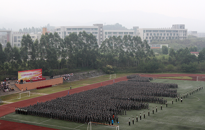 9月25日,我校在足球场隆重举行2015级新生军训会操暨入学教育总结大会。校党委书记段邦贤,副校长陈农心、赖小景,武警河源支队领导,各二级学院负责人、副书记、团总支书记、辅导员以及全体2015级新生等出席了此次大会。