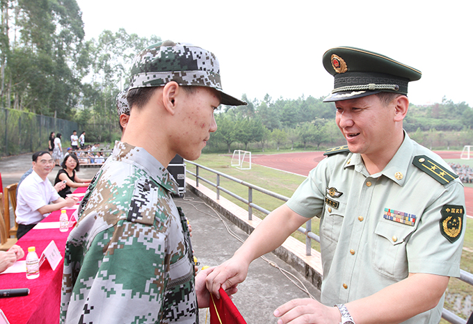 武警河源市支队臧永仁副政委为军训会操优秀成员颁奖 |