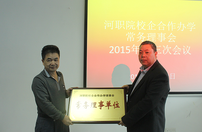 经会议审议、表决,决定增补和平工业园管委会为理事会常务理事单位,理事会常务副理事长唐汉芳为增补单位颁发了“常务理事单位”牌匾。和平工业园管委会负责人对理事会的决定表示感谢,并表示今后将继续与我校在人才培养、技术服务方面开展全方位合作。
