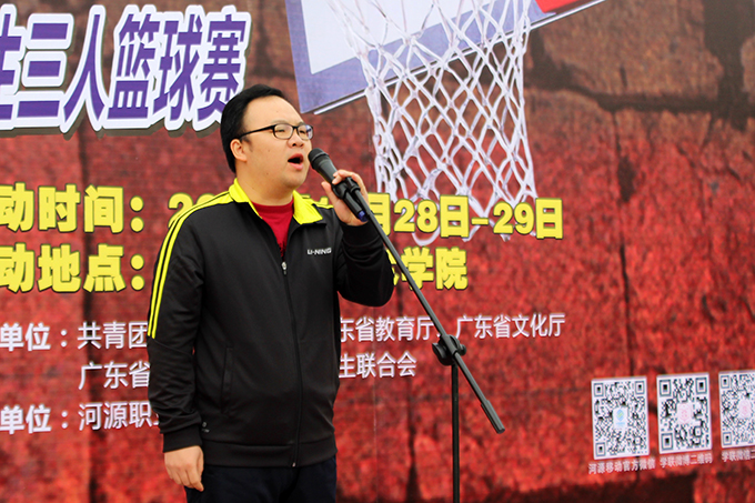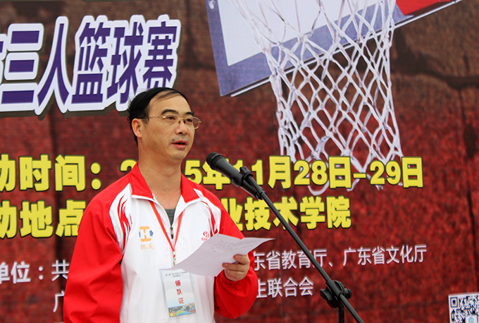 团省委学校部陈前副部长宣布三人篮球赛开幕 |