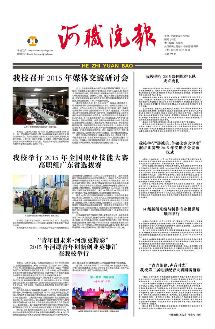 1月12日,《河职院报》第59期电子版上线。请大家点击附件下载PDF版,在电脑中放大清晰阅读。