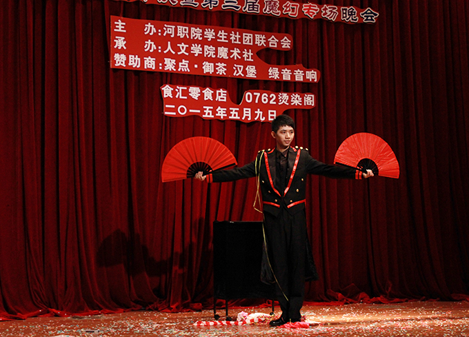 5月9日,我校魔术社在报告厅举办了“魔幻演绎,扇耀奇迹”为主题的三周年庆暨第三届魔幻专场晚会。人文学院团总支负责人、各社团代表、学生代表欣赏此次晚会。