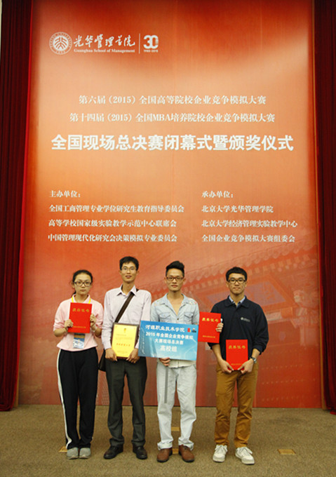 4月30日,第六届(2015)全国高等院校企业竞争模拟大赛总决赛圆满结束,我校代表队获得一等奖一名,二等奖一名,并荣获“团体奖第二名”。