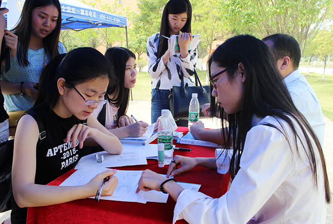 招聘会上的兼职职位涉及范围广,有家教、礼仪、服务员、派单员等。现场气氛热烈,在工作人员热情的讲解下,许多兼职招聘摊位前都挤满了前来咨询的同学。