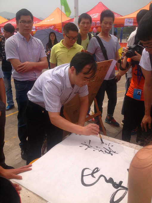 开幕式后,54个学生社团纷纷拿出看家绝技,在灯光篮球场举办社团作品展示活动。模特协会的T台秀、电子协会的机器人、棋艺协会的擂台赛、神笔协会的书法展••••纷纷吸引了众多学生的围观和喝彩,充分展示了学生社团的魅力和风采。赖小景副校长在走访各个社团作品展中充分肯定了学生社团取得的成绩,并鼓励学生社团要充分利用社团文化节这一载体,发动广大社团会员积极参加到活动中来,秀出个性,秀出风采。
