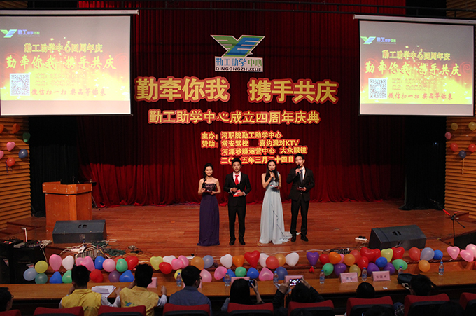 3月24日,我校勤工助学中心在学术报告厅举办以“勤牵你我,携手共庆”为主题的四周年庆典晚会。出席此次晚会的有勤工助学中心指导老师,各组织、协会代表等。