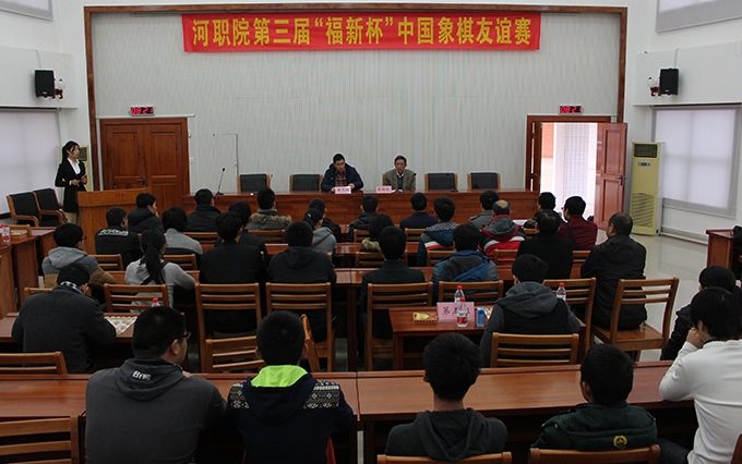 12月27日,我校在行政楼C108举行第三届“福新杯”中国象棋友谊赛开幕式。校团负责人、福新集团有限公司原材料组雷钰恒经理、校团委相关相关老师及参赛选手参加了本次开幕仪式。