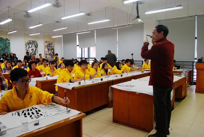 本次交流活动共有四个环节,分别是《中华书法》课程授课、《中华国画》课程授课、《手机摄影》课程授课和“两地青少年文艺交流活动”。我校书法老师和国画老师耐心讲授示范,美术教育专业和国画协会学生细心辅导交流,增进了海外学生对中国传统文化的了解。活动还特邀我校原党委书记高仁泽同志主讲《手机摄影》课程,带领华裔师生们在校园内摄影采风。