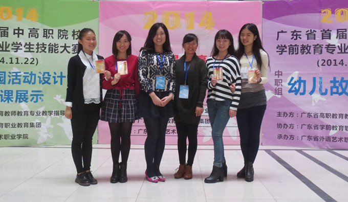 2014年广东省首届中高职院校学前教育专业学生技能大赛于11月22日在广东省外语艺术职业学院举行。我校选派的凌紫嫣、王紫苑、陈瑶琛、徐梦婕分别荣获高职组综合能力一等奖、二等奖和三等奖。凌紫嫣同时获得“案例分析”、“幼儿园活动设计说课展示”两个单项最佳表现奖。郑颖琼、袁晓雯老师荣获优秀指导教师奖。我校的团体总成绩在全省同类院校中名列前茅。