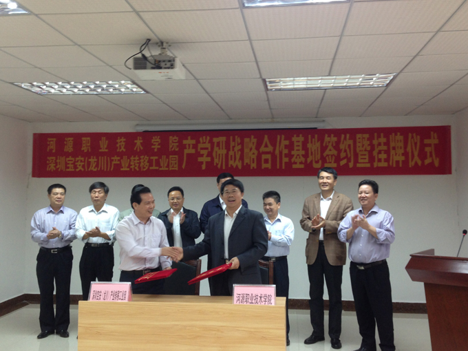 11月7日上午,易游app入口站官网——深圳宝安(龙川)产业转移工业园产学研战略合作签约暨揭牌仪式在龙川县工业园区管委会隆重举行。我校校长刘安华与龙川县县委副书记、县长韦钦强共同签订了产学研战略合作框架协议,并一同为“产学研战略合作基地”揭牌。此次合作,是我校推动校企合作的重要成果,对我校进一步深化产教融合,完善校企合作育人机制具有重要意义。