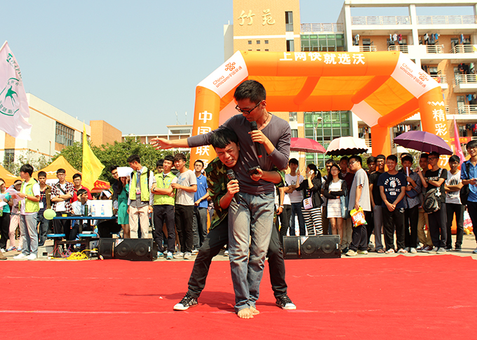 活动现场气氛热烈,新生们热情高涨,各社团协会纷纷秀出自己的“看家本领”,街舞协会酷炫的舞姿、健美操协会动感的身姿、书法协会行云流水般的行书、武术协会高难度的飞人墙、踢板动作,交谊舞协会优美的舞姿、模特协会优雅的走秀、魔术协会奇幻的魔术、海燕话剧社小品《人质》等精彩绝伦的节目表演使现场观众赞叹不已。平面设计协会创意十足的设计作品展使活动现场更添亮景,整个灯光篮球场成为了一个五彩缤纷、自我展示的大舞台。