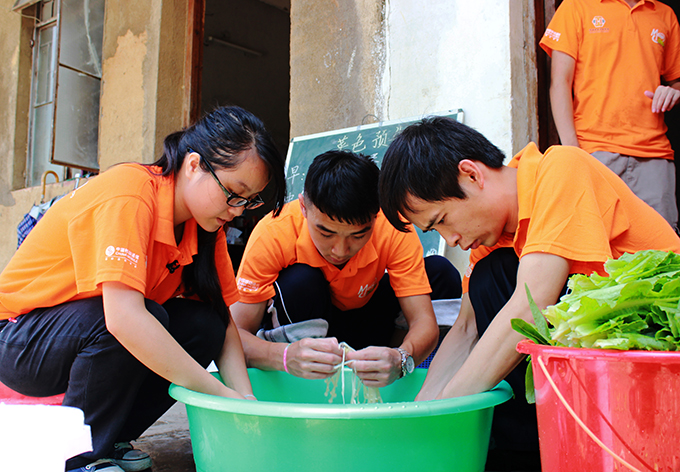 后勤服务队是“三下乡”志愿服务队力量的源泉。志愿者们每一顿美餐的背后,都有后勤服务队的辛苦付出。无论是从食材的选购,还是为志愿者们打点生活用品,事无巨细,后勤服务队都为大家提供最好的物质支持,使得“三下乡”志愿服务活动得以顺利开展。每天后勤服务队汗流浃背为志愿者们服务,不需要太多的言语,志愿者们饭后满足的笑容是给他们最好的回报。