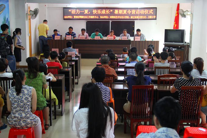 7月16日上午,艺术与设计学院在源城区卫星社区举行“活力一夏,快乐成长”暑期夏令营启动仪式。源城区新江街道办事处宣传委员潘群静、新江街道卫星社区居委会党委会书记谢志坤、河源市源城区明镜社会工作服务中心全体工作人员、我校校团委全体老师、艺术与设计学院相关负责人、夏令营全体学生、家长代表以及全体志愿者参加了启动仪式。