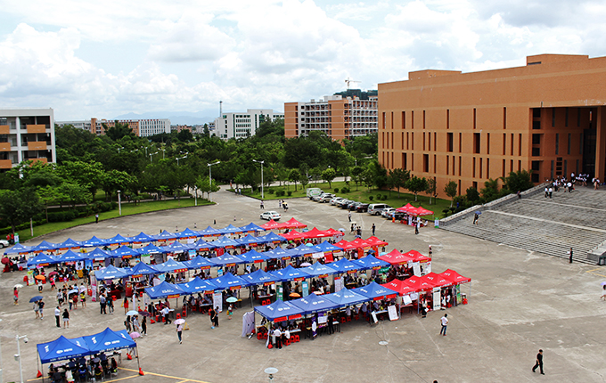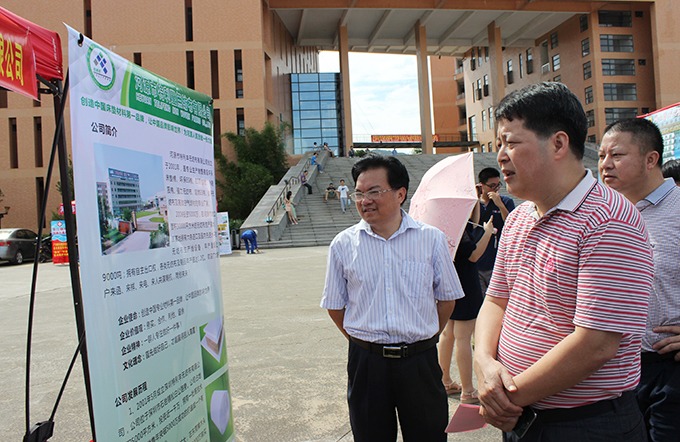 6月24日,在我校图书馆前贤能广场隆重举行“全力打造广东绿谷,共园大学生就业梦——高校毕业生就业专场招聘会”。市人力资源和社会保障局许西湖副局长、学校分管领导陈农心副校长亲临现场指导,学工处就业中心相关人员、各学院副书记、辅导员以及2014届毕业生参加招聘会。
