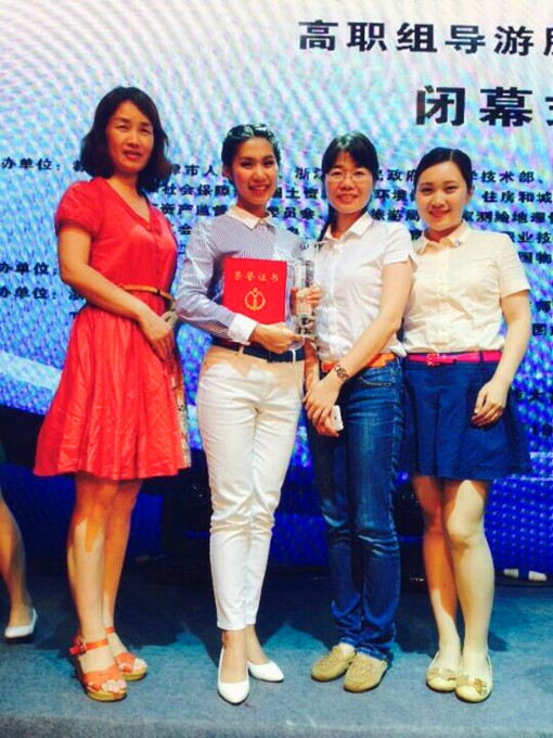 ,“全国职业院校技能大赛导游服务赛项”在杭州落下帷幕。在来自全国30个省(市、自治区) 90所院校的143名选手参加中、英文两个组别的赛事比拼。我校12级旅游管理2班的陈林静同学以其出色的发挥脱颖而出,成功获得中文组第五名的好成绩,成为八位一等奖选手中唯一来自广东的选手!陈林静同学的出色表现,充分展示了我校旅游人才培养的成果。