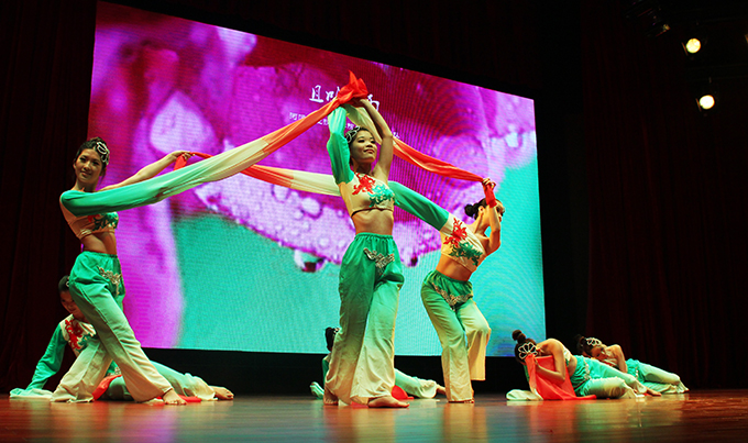 这场朗诵会由广东省朗诵协会、市朗诵艺术学会和我校联合主办,这是省朗诵协会自去年成立以来首次组团到地级市交流,河源市是首站。整场朗诵会分为《人与人生》、《真情永远》及《美丽中国,绿色河源》三个篇章,分别歌颂了对生命、家人以及对祖国大好河山的热爱。朗诵会结合朗诵、舞蹈、独唱等形式进行,来自省朗诵协会的史子兴、一舟、杨召江、顾月、牧言、袁铭灿等老师,与市朗诵艺术学会的会员及我校学生同台献艺。别开生面的《放飞中国梦》、饱含深情的《沈园故事》、慷慨激昂的《河床》、极具中国韵味的合诵《东方之月》等节目使会场充满文学气息,让在场观众如痴如醉,不时送上热烈的掌声。