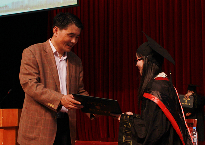 陈德清副校长为第一批学士学位获得学生颁发证书