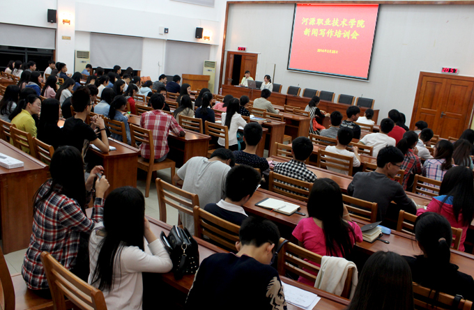 根据《河职院2014年宣传工作要点》,我校宣传部将面向全校信息员和新闻中心全体人员定期开展新闻写作、新闻采访、新闻专题策划、摄影等专题培训,切实提升我校新闻队伍的采写水平和专业技能。此次培训是今年的第一期,在4月、5月,宣传部计划再各开展一次培训。