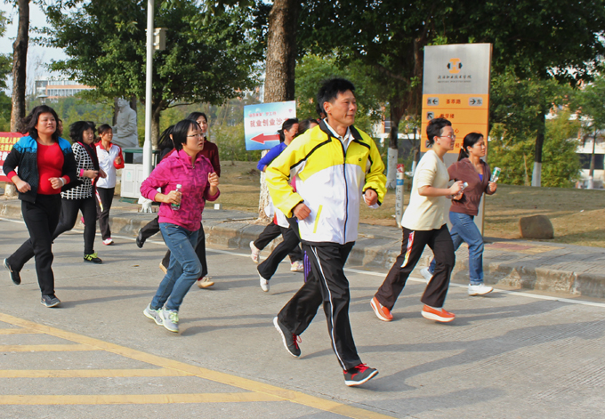 在裁判员宣读了活动规则后,各工会依次从艺术楼广场出发,经贤能广场—环湖路—图书馆东侧—A区饭堂西侧—教学楼北—行政楼东侧—贤能广场,最终回到艺术楼广场。活动时间虽然短,但参与的教职工都热情高涨,在跑步过程中互相鼓劲,努力保持队伍的完整性。继教思工会在保证队形的整体性中以最短的时间到达终点,获得第一名;人文学院工会、艺术与设计学院工会分别获得第二、第三名。