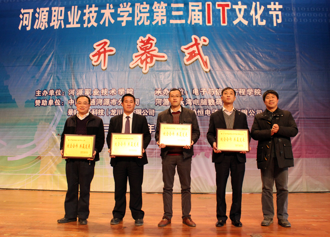 12月26日,我校第三届IT文化节在学术报告厅拉开帷幕。本届文化节以“拓展IT视野,引领校园文化;感受时尚IT,创建和谐校园”为主题,其宗旨在于丰富学生第二课堂内容,弘扬IT科技文化,推进校园文化科技发展。校长刘安华、副校长陈农心,电子与信息工程学院校企合作委员会委员、各专业建设指导委员会委员单位代表、校友代表以及学校师生代表出席了开幕式。
