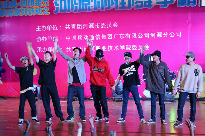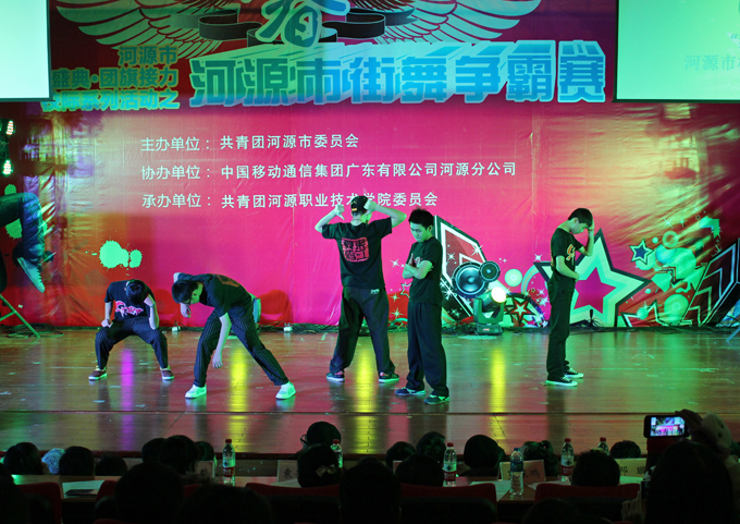 比赛分为齐舞组、Popping、Breaking3vs3三个项目,在齐舞组表演环节中,校街舞协会以娴熟的舞技、狂野的装扮、多元素舞种的完美结合带动全场气氛,赢得评委的一致好评;在Popping比拼中,东江中学的黄志健与田家炳实验中学的李强华两人以其超强的节奏感、十足的动作张力、舞姿难度系数高而斗得难分难解时,前者凭借超强的自信和临场发挥水平略胜一筹;在Breaking3vs3斗舞环节里,河职院1队以酷炫的个人舞技秀、默契的团队协作荣获桂冠。这场持续两个多小时的视觉盛宴,精彩连连,临近尾声更是场面火爆、人声鼎沸。