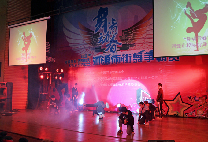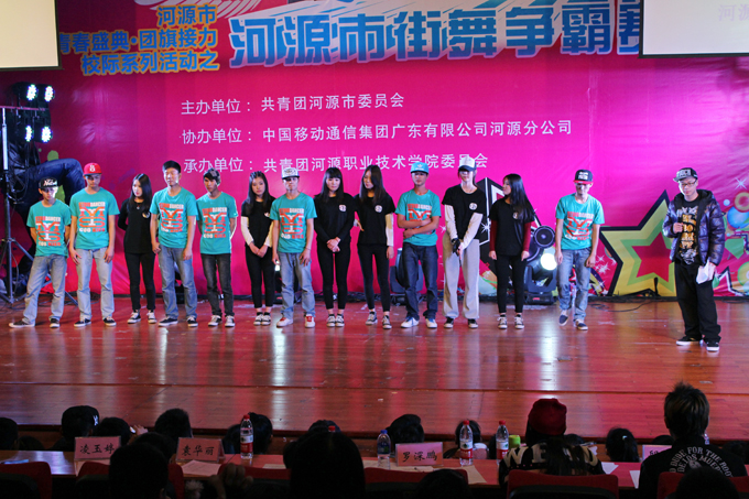 冬至将近,寒风加剧。12月21日,学校学术报告厅迎来了河源市2013年首届“舞动青春”校际街舞争霸赛总决赛。比赛现场座无虚席,热闹非凡。团市委副书记袁华丽、学少部部长凌玉婷,校团委副书记邝茂华、大赛评委以及全市各参赛队伍、助威团出席了活动。