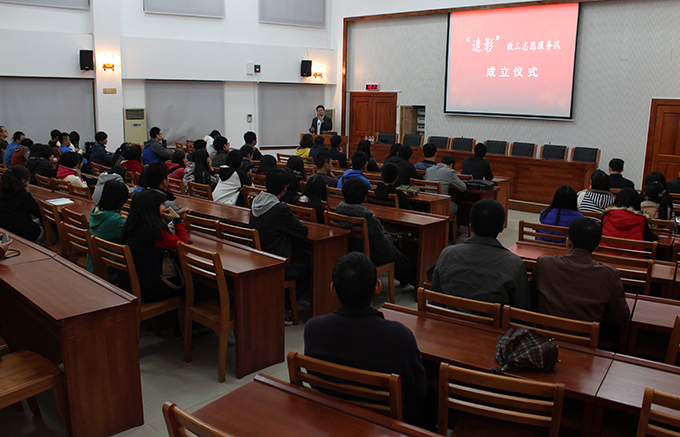 11月27日,我校于行政楼C108 举行“追影”教工志愿服务队成立仪式,校党委书记高仁泽、“追影”教工志愿者服务队指导老师以及摄影爱好者参加了此次仪式。