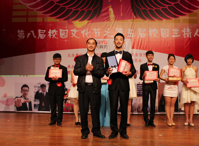 11月25日晚,我校于学术报告厅举办以“‘主’我风采、‘持’骋舞台”为主题的第五届校园主持人大赛决赛,经过3个环节的激烈比赛后,12级广告设计的李逸圣以其老练稳定的表现摘得了本次比赛的桂冠。副校长赖小景,宣传部、团委有关人员观看了比赛。