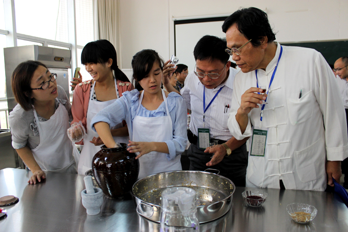 领导学者参观学院黄酒酿造实训室 |