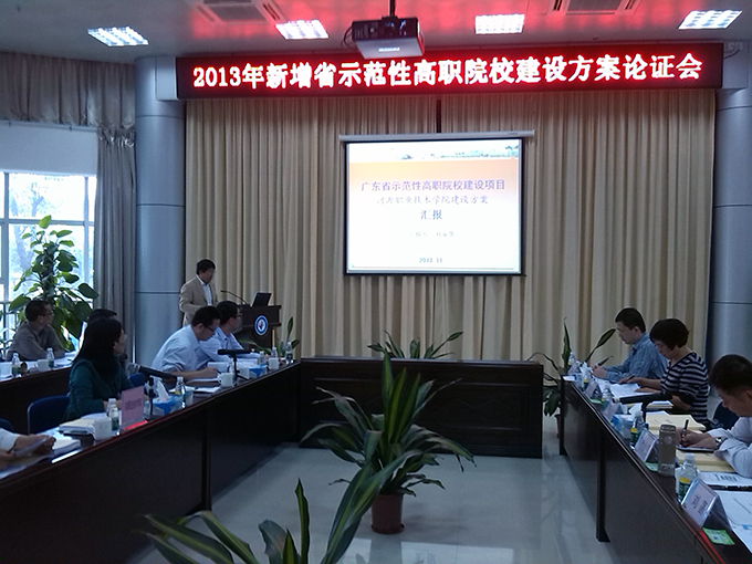 11月6日,由省教育厅主办的2013年新增省示范性高职院校建设方案论证会在中山职业技术学院召开,会议对新增的15所省示范性高职院校建设项目单位的建设方案及任务书进行了论证。我校作立项建设单位之一,由刘安华校长、陈德清副校长带队参会。