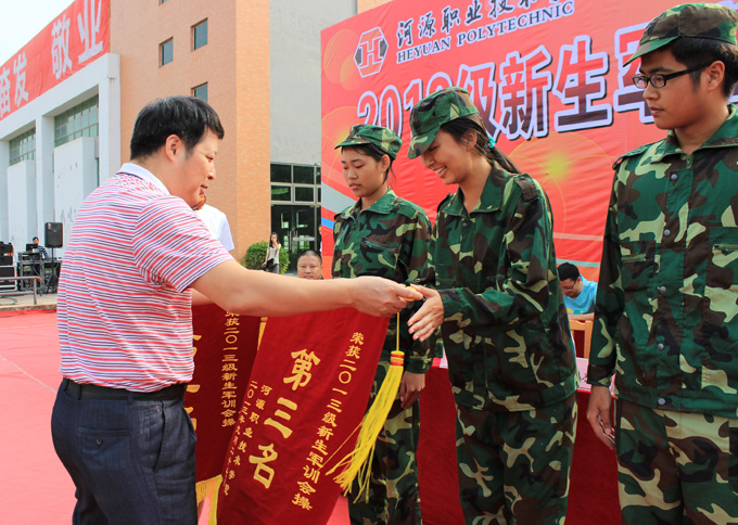 9月27日,我校于足球场举行2013级新生军训会操暨军训入学教育总结大会。河源武警支队副参谋长林庆怀、全体教官,我校副校长陈农心、学工处相关人员、各二级学院院长、副书记及2013级全体新生参加了此次大会。