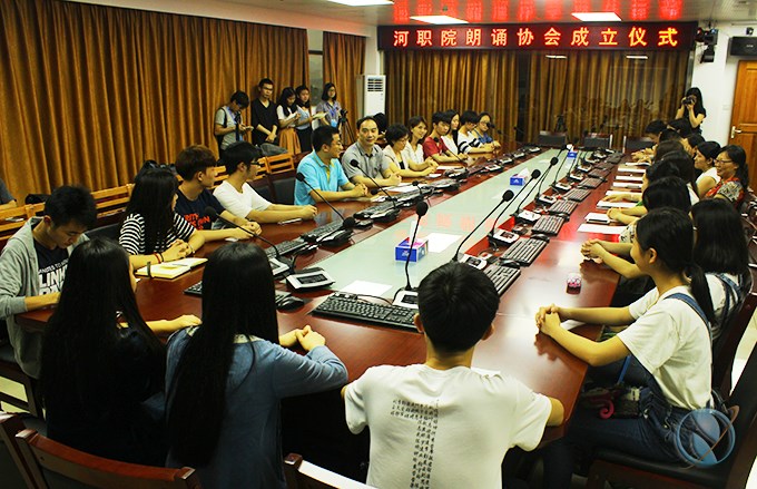 (学校工会通讯员 叶初标,学生文字记者 罗继红)4月26日,我校于行政楼文秘实训室举行朗诵协会成立仪式。学校副校长赖小景、学校工会以及团委有关负责人、学校朗诵协会会员等出席仪式。