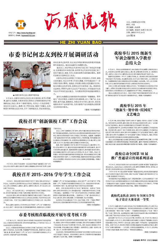 10月28日,《河职院报》第55期电子版上线。请大家点击附件下载PDF版,在电脑中放大清晰阅读。
