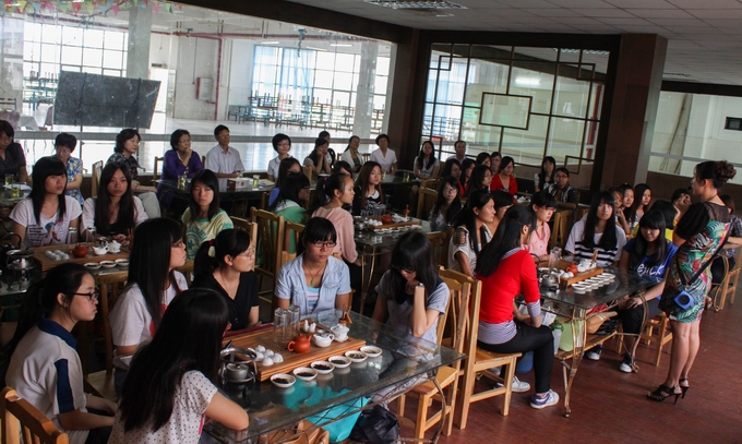 下午,省妇联一行到校后,首先来到“才情女性”之茶文化的课堂上。记者观察到,任课老师以新颖的语言与亲和的授课方式,介绍茶的分类和特点、茶的文化内涵以及不同茶的沏泡方式等知识。省妇联一行认为以有深厚历史和广泛普及面的茶文化开篇,可以很好地吸引同学们投入到学堂课程中来。