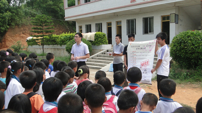 期间,我校团委黄志鹏主任为下寨村小学的小朋友们介绍了此次“三下乡”社会实践义务支教活动的课程开设、授课内容、招生人数、授课地点等情况,并发放了义务支教活动宣传画册。