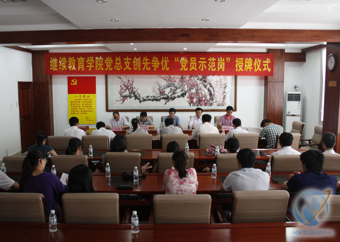 5月17日,我校继续教育学院党总支于行政楼第一会议室举行创先争优“党员示范岗”授牌仪式。校党委副书记韦荣,继续教育学院全体党员,高新区夜校、紫金分校、连平分校负责人出席仪式。