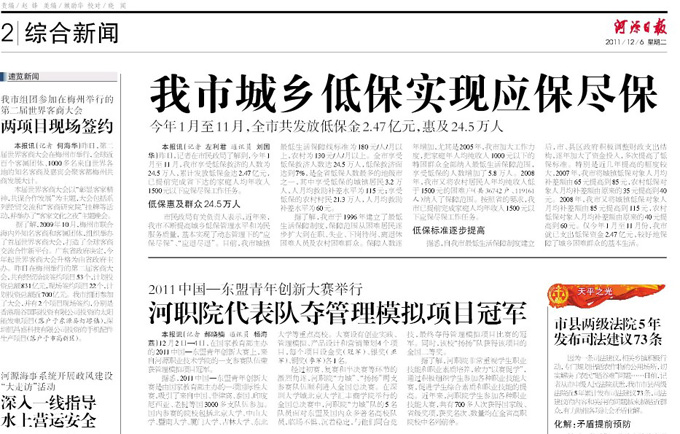 12月6日,我校荣获中国―东盟青年创新大赛项目冠军得到多家媒体报道。此次获奖是我校近年来深化内涵建设、大力推动“以赛促学”的教学改革模式所取得的标志性成果。广东电视台新闻频道就此事专门到校采访了相关师生,南方日报、深圳特区报、深圳商报、河源日报、河源晚报、新浪网、人民网、中国网、中国广播网、河源网等知名媒体也相继报道了夺冠消息。