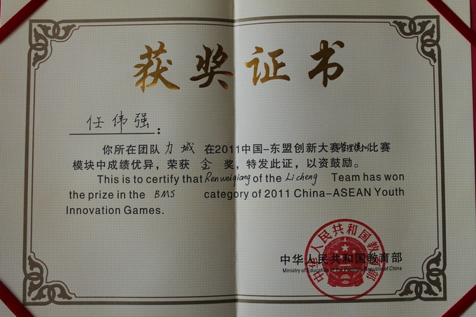 12月2~4日,我校选手参加教育部主办的2011中国―东盟青年创新大赛获得管理模拟项目冠军。
