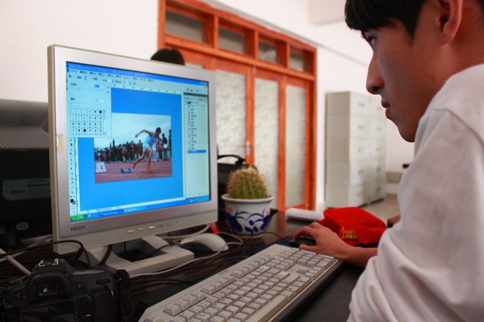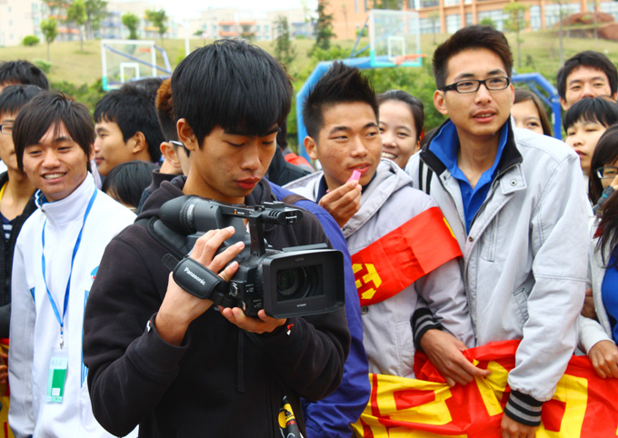 从校运会开幕至闭幕,总可以看见这样的人。左手捧笔记本,右手拿圆珠笔,眼神专注,舌唇舞动,竖耳聆听,用文字如实的记载着校运会上的点点滴滴;黝黑的相机摇摆于赛场的每个角落,一次次食指尖的灵动,一声声快门声响,用相片记录校运会的每一个精彩瞬间;扛着笨重的摄像机,在肩上、在胸前、在眼前,用声音与画面交织出校运会的每一处精彩。这群人就是我校新闻中心的新闻工作者,穿梭于赛前幕后,将文字、摄影、摄像汇聚赛场,描绘动人赛况,把记录编辑成新闻,报道易游中国。