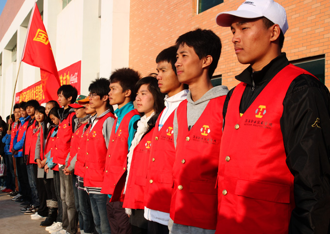 11月30日至12月2日,我校校运会各项比赛顺利进行。在这短短的3天里,场上,运动健儿奋勇拼搏,朝着目标的终点前进;场下,啦啦队响亮的加油声,宣奖时观众的欢呼声,裁判员短促的鸣枪声,声声入耳。更有默默工作的志愿者,伴随着运动员们,将激情与快乐、汗水与疲惫挥洒于整个校运会会场,为校运会增添一抹绿色。默名的志愿者,最可爱的人儿,用行动诠释着青春的活力。