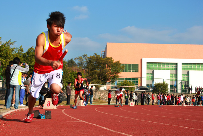 虽临近校运会闭幕,但赛场内外还是聚集许多观众助威团。随着一声枪响,运动员倾力争跑,双脚在赛场驰骋,竭力为荣誉而战。同时,啦啦队的热情呼喊和加油声,也再次点燃了全场运动激情。