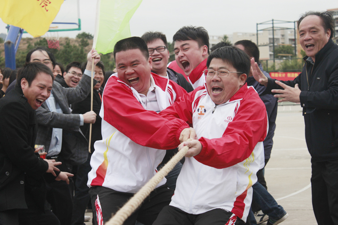 比赛采取男女混合三局两胜的淘汰制,比赛顺序及对手均由抽签决定。一声哨声,拉开了教职工拔河比赛的序幕,半蹲、后倾等动作陆续上演,中点的红绳则在你来我往的“拉”锯战中微妙变化。现场助威团的加油声伴随着赛况而越发响亮。最终,电信学院工会代表队夺得第一名,机关工会代表队与机电学院工会代表队分获二、三名。