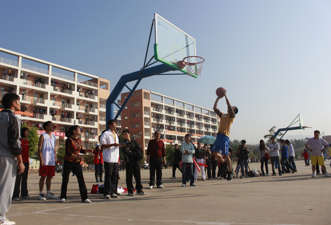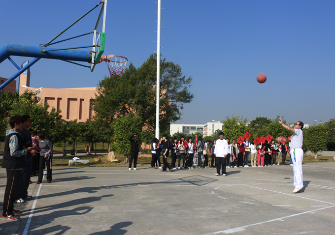 教职工篮球技巧赛在1、2号篮球场进行,此次技巧赛设置男女混合运球投篮接力赛和一分钟投篮两个竞赛项目。在一分钟投篮的比赛中,来自机关工会代表队的陈农心副校长获得男子组第一名。